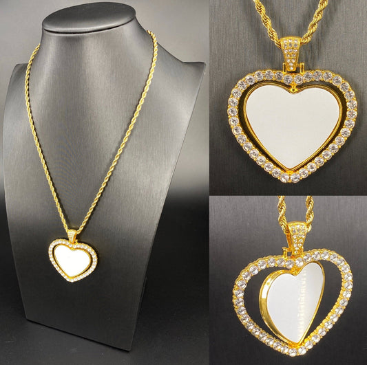Regular price $4.75 USDRegular priceUnit price / per$8.00 USDSale price $4.75 USDSublimation Rotating Heart Bling Zirconia Pendant (2 photos)