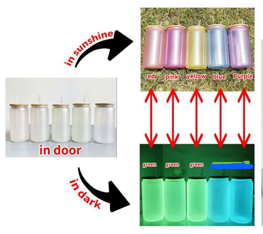 Regular price $3.99 USDRegular priceUnit price / per$8.99 USDSale price $3.99 USDUv + glow 16 oz Sublimation iridescent soda glass jar w/ bamboo lid