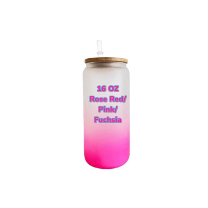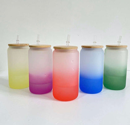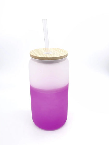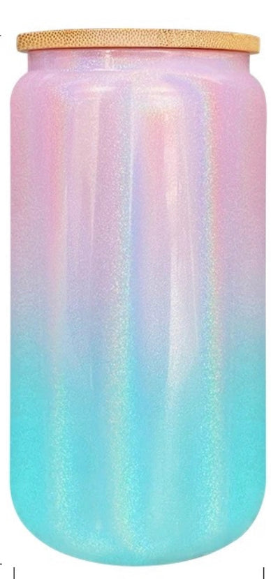15 oz ombre shimmer Sublimation soda glass jar w/ bling bamboo lid