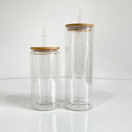 Sublimation bamboo lid glass Tumbler with Handle