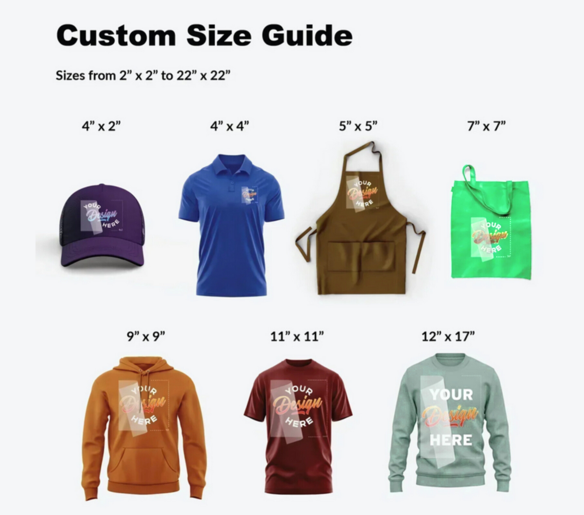 Choose your design’s transfer size, quantity, and upload your artwork as per guidelines. Receive your order in roll or pre-cut transfers. Enjoy bulk discounts on total items, regardless of sizes and designs, for maximum savings.