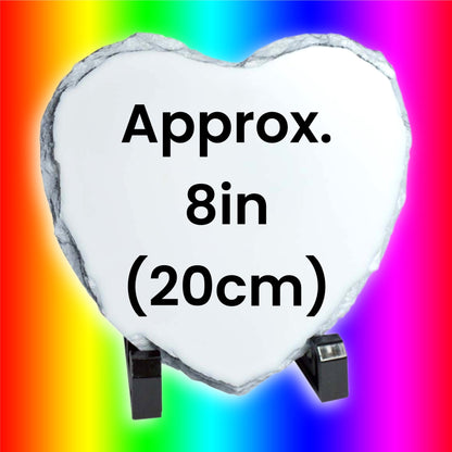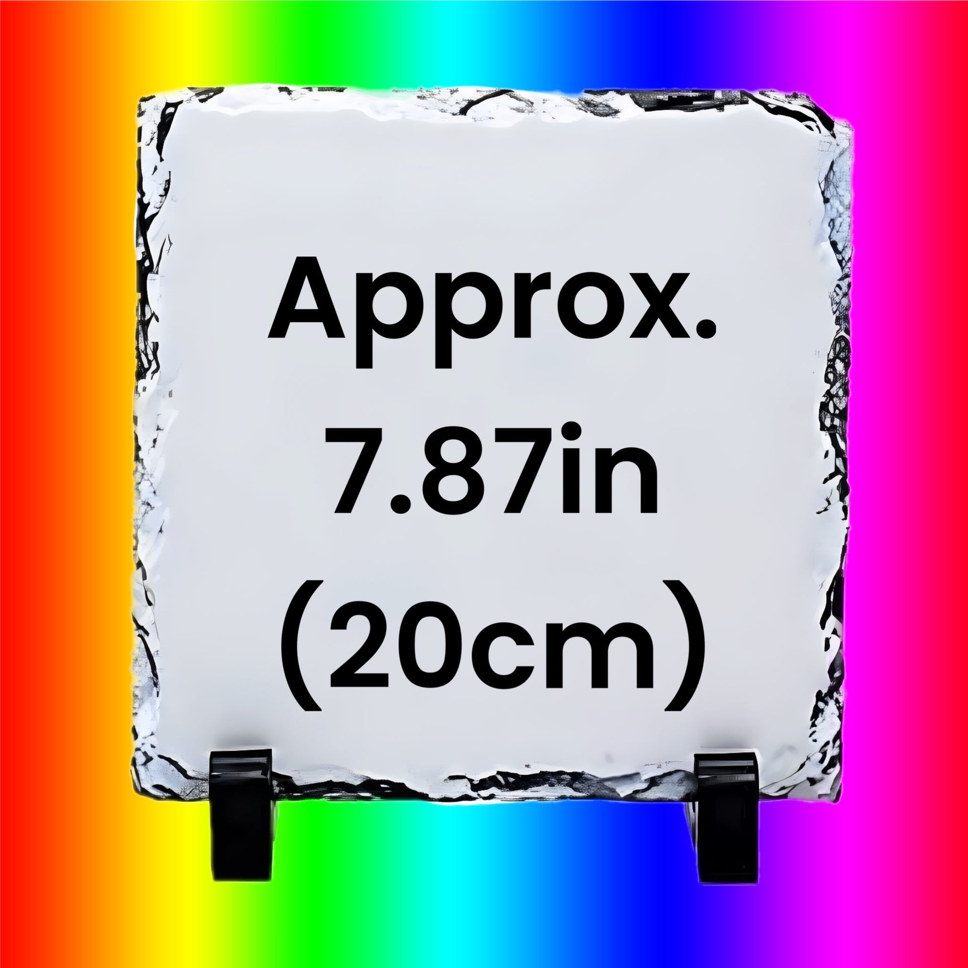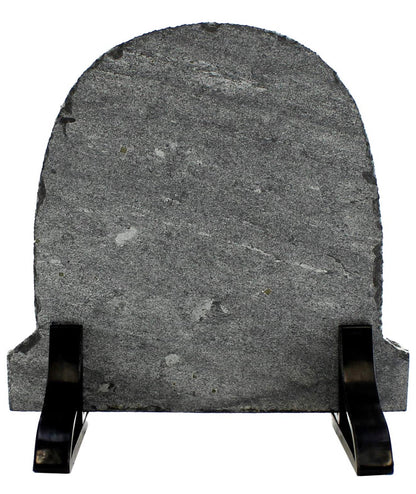 Our slate plaques have a rough, natural stone appearance. Each plaque has its own natural variations in texture and edge, with no two being exactly alike. The heavyweight feel and rustic quality makes this plaque a striking gift for mom, dad, weddings, house warming, or any occasion. A very impressive piece and quality accessory for her dresser, nightstand, or any room in the house. Each stone is cut to an approximate size and are available in the following options (measurements are not exact).